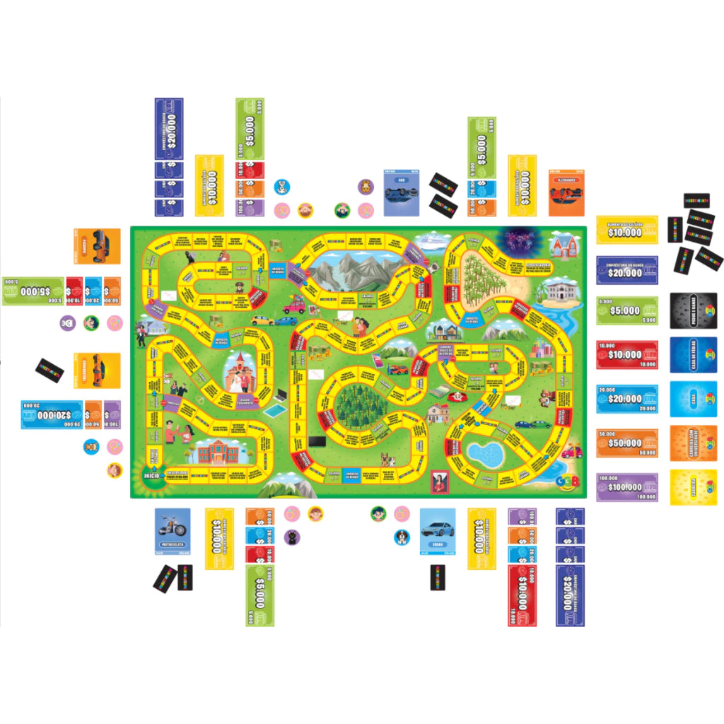 Jogo de Tabuleiro Corrida da Vida Completo com Cartas e Dinheiro Criança Adulto Familia
